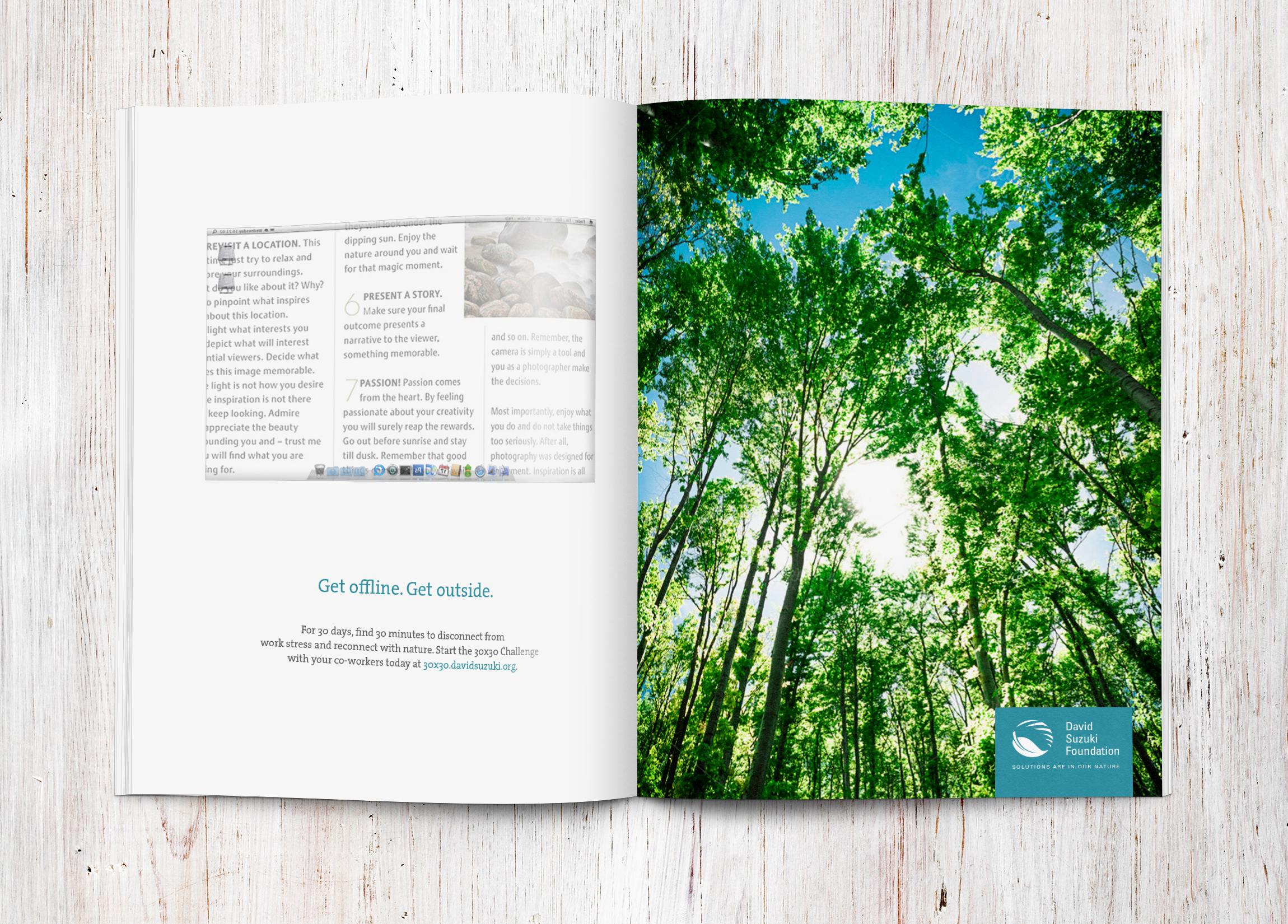 The 2014 brief called for people to take the 30x30 challenge: go outside for 30 minutes, for 30 days. We wanted people to disconnect, so we helped them see their screens differently.