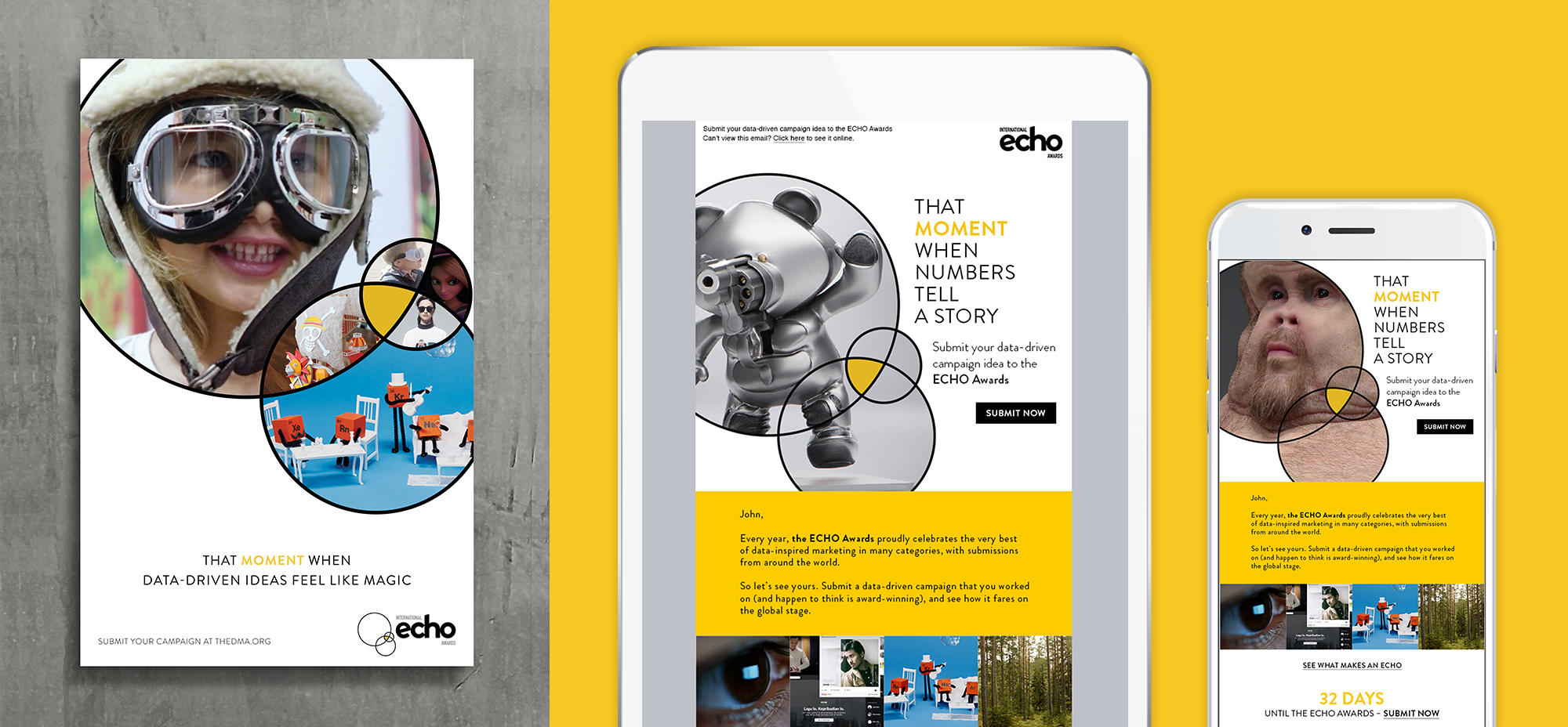 In 2017, the International ECHO Awards launched an open call to rebrand the annual awards. Every year, the ECHOs honour the world’s best data-driven marketing, and they wanted a brand identity and creative platform to reflect that.