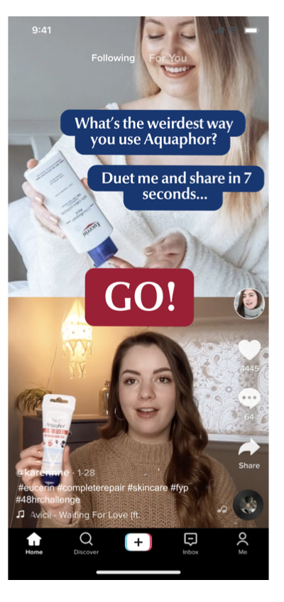 Aquaphor’s reputation for being multifunctional is long-established. We’ll put a modern spin on it by asking people to duet with our TikTok post and share how they use it. The catch? They have to do it in 7 seconds or less (because Aquaphor only has 7 ingredients).